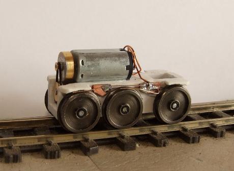 It can be built to any gauge from 9mm up to 16.5mm and wider if you ask for longer axles, 8 wheelbases from 17 to 30mm and the wheels can be 8.5, 9.5, 10.5, 12 or 14mm. I can supply 3 different motors, M20 (8 x 15), N20 (10 x 15) 0r N30 (10 x 21) with a flywheel on the larger 2. The ones in the pictures are 9mm gauge, 17mm wb with N20 motors.